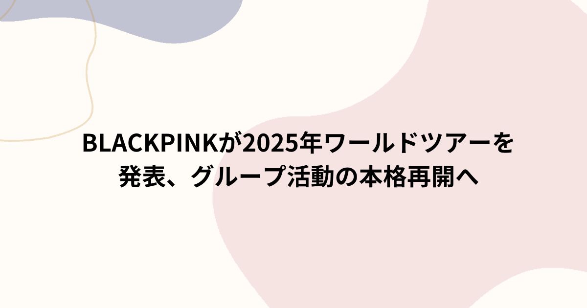 韓国の人気ガールズグループBLACKPINKが、待望の2025年ワールドツアーを発表しました。世界中のファンが熱望していたグループ活動の本格再開となり、圧巻のパフォーマンスが再びステージで披露されることに期待が高まっています。