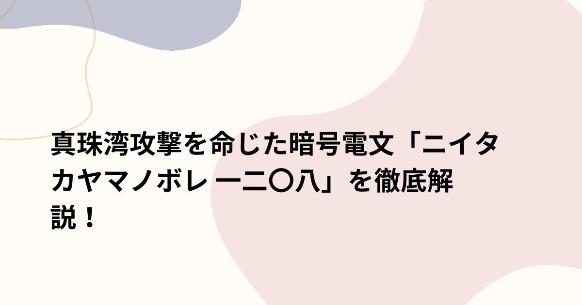これは一体どのような意味を持ち、どのように伝達されたのか?本記事では、この歴史的な暗号電文の背景や真珠湾攻撃に至る経緯を詳しく解説します。