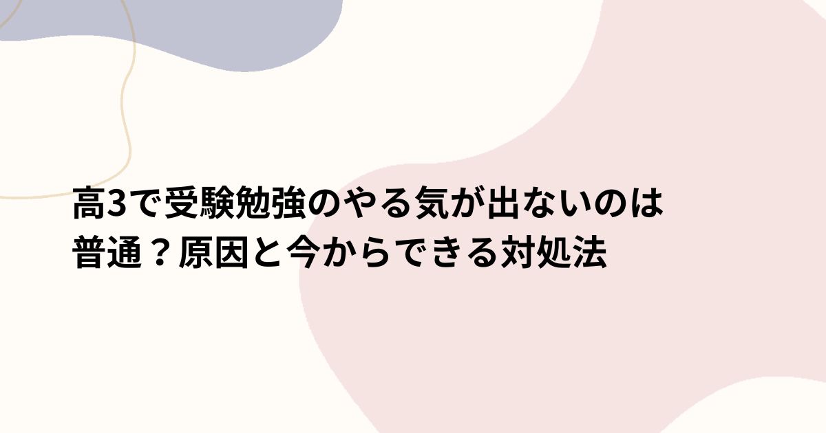 「高3になれば自然とやる気が出ると思っていたのに、全然エンジンがかからない」「周りは必死なのに、自分だけ取り残されている気がする……」