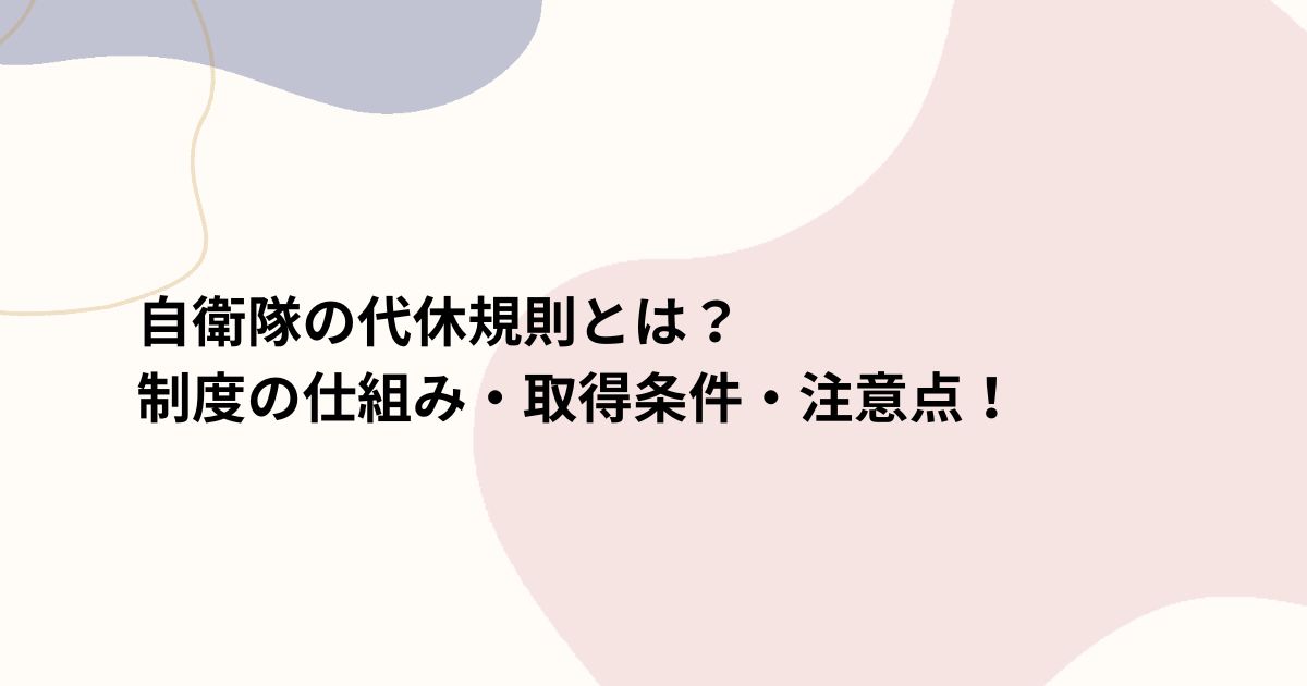 この記事では、「自衛隊 代休 規則」に焦点を当て、その法的根拠や具体的な運用、取得条件、注意点について詳しく解説していきます。