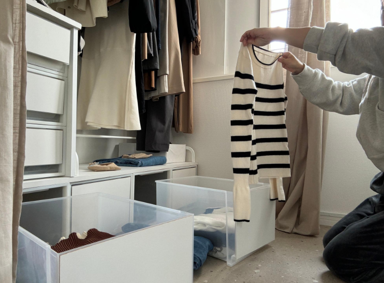 季節外れの服をそのまま放置しておくと、湿気やホコリ、摩擦によって服の劣化が進みます。特にニットやウール素材は虫食いやカビの被害を受けやすく、シーズンが来たときには着られなくなっていた…なんてことも。