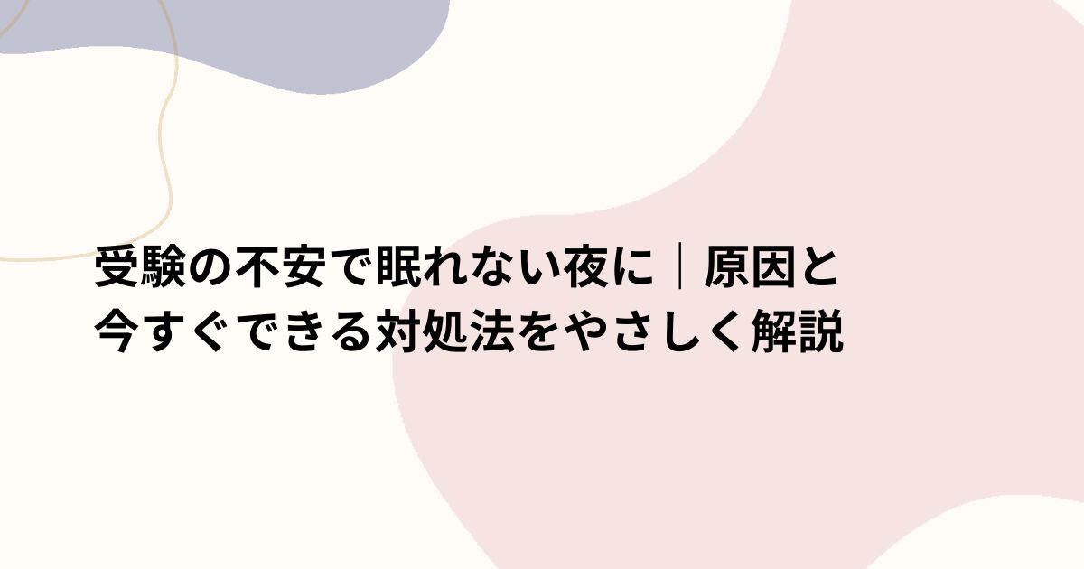 受験生にとって、夜の不安はとても苦しいものです。しかし、眠れないことを責める必要はありません。この記事では、受験期の不眠の原因と、今夜から試せる具体的なリラックス法をやさしく解説します。