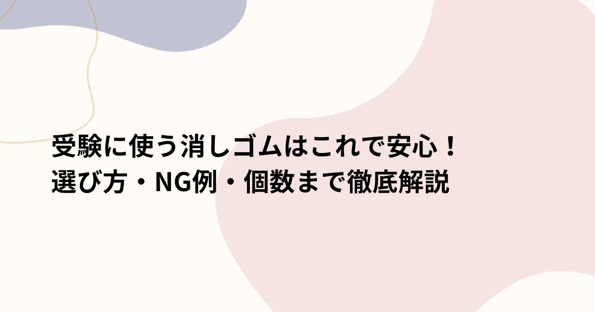多くの入試では、カンニング防止のために「英文字や数式が印刷されていないもの」という指定があります。また、電動消しゴムや過度に大きなサイズは制限されることが多いため、一般的でシンプルなものが推奨されます。