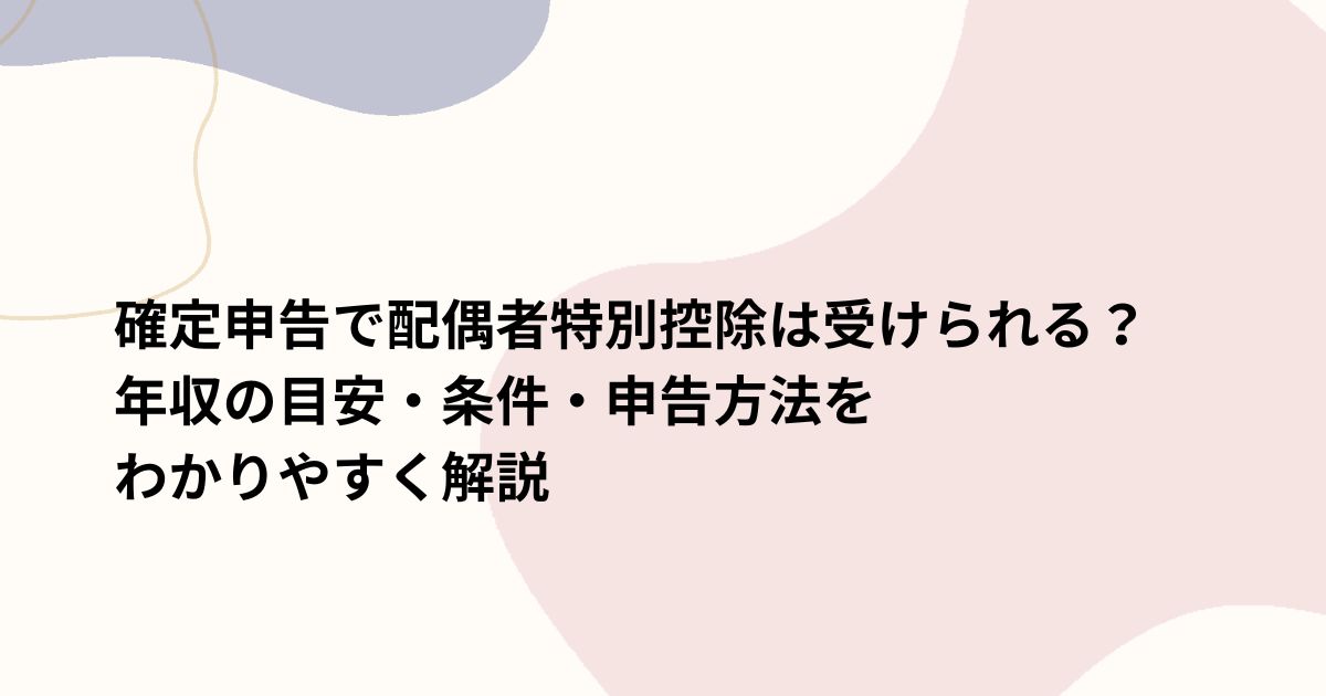 配偶者特別控除は、配偶者の年収が103万円を超えても、201万円以下であれば適用できる制度です。この記事では、配偶者特別控除の仕組みから、適用条件、年収の目安、確定申告や年末調整での申告方法まで、わかりやすく解説します。