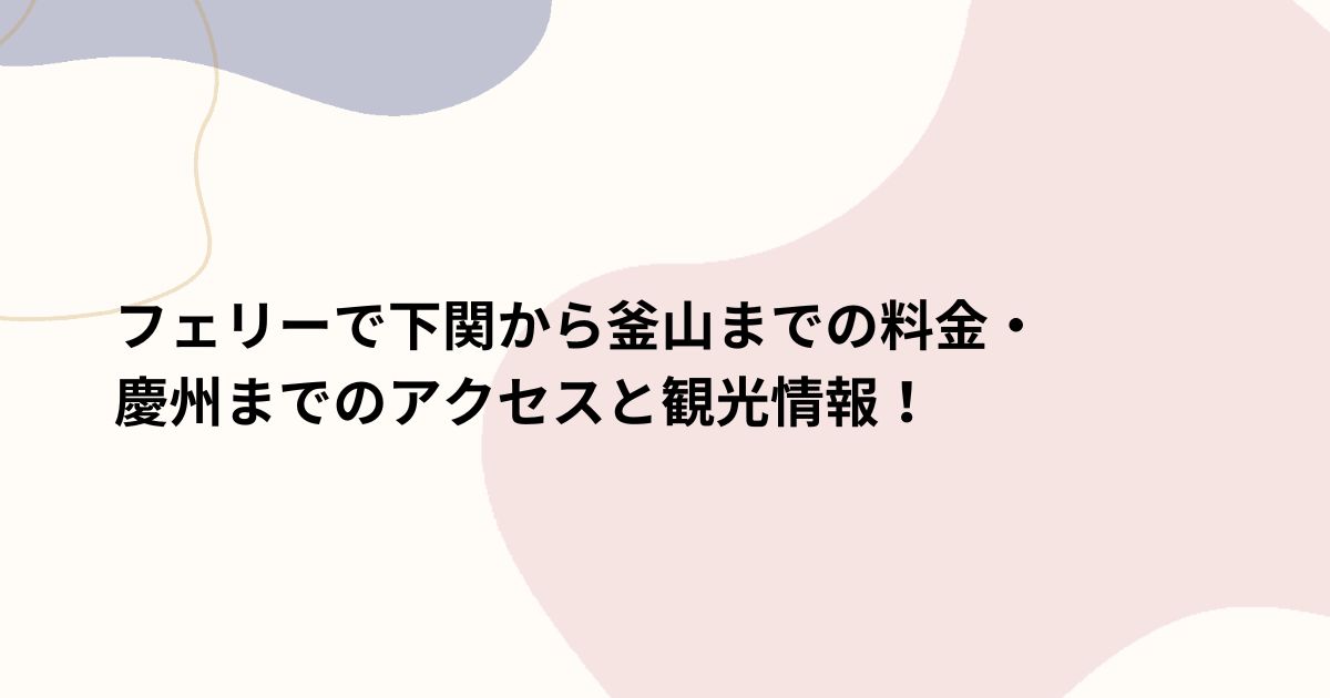 フェリーで下関から釜山までの料金 まとめ