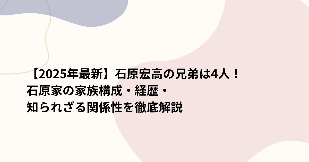この記事では、石原宏高氏のプロフィールをはじめ、石原家4兄弟の家族構成や経歴、そして兄弟間の関係性について詳しく解説します。