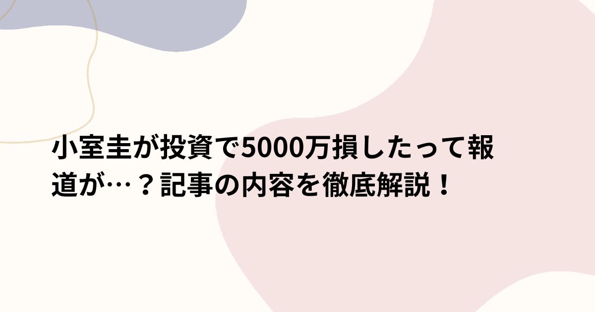 今回は、小室圭が投資で5000万損したって報道が…?記事の内容は?という事を解説しました。