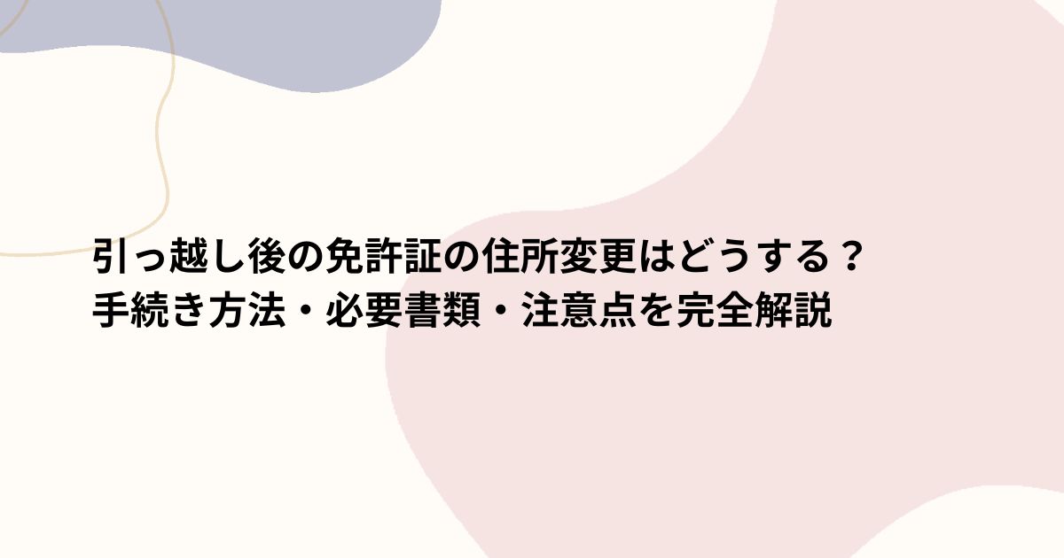 引っ越しが終わって一安心…と思いきや、忘れてはならないのが「運転免許証の住所変更」です。「どこへ行けばいいの?」「必要な書類は?」と不安に思う方も多いはず。