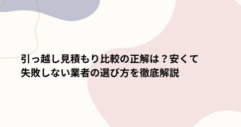 - 引っ越し見積もり比較の正解は?安くて失敗しない業者の選び方を徹底解説