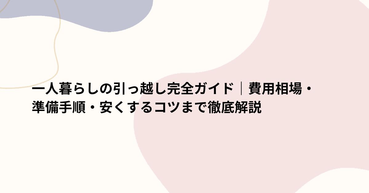 一人暮らしの引っ越しは、手続きや荷造りなど「何から手をつければいいかわからない」と不安になるものです。また、できるだけ費用を抑えて新生活を始めたいですよね。