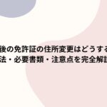 - 住所変更: 免許証、銀行口座、クレジットカード、スマホ、通販サイト(Amazon・楽天など)。