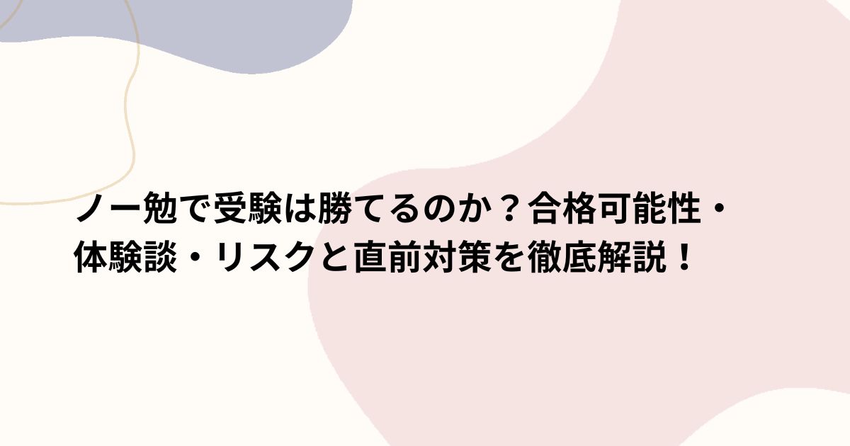 ノー勉で受験は勝てるのか?合格可能性・体験談・リスクと直前対策を徹底解説