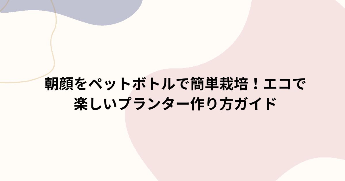 この記事では、朝顔をペットボトルで育てるための具体的な手順とポイントを詳しく解説します。夏の自由研究やガーデニング入門としてもおすすめです!