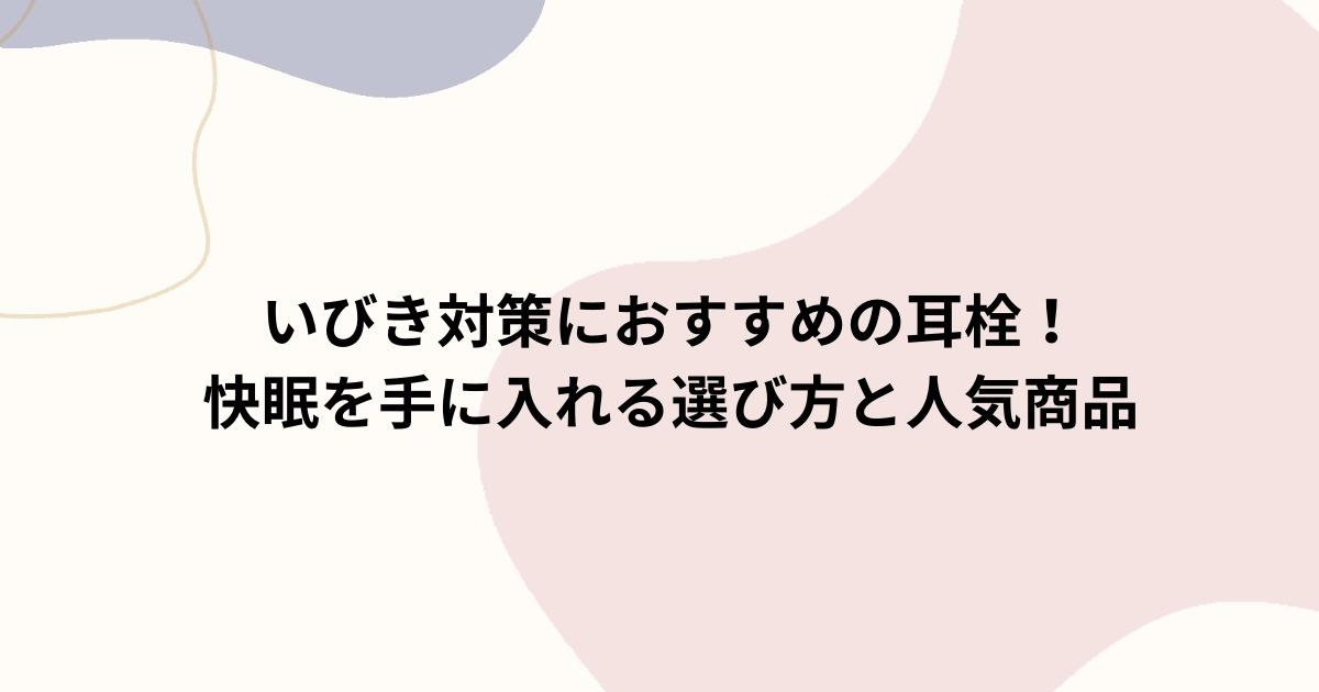 そんな時に役立つのが「耳栓」です。適切な耳栓を選ぶことで、いびきの音を軽減し、ぐっすり眠ることができます。