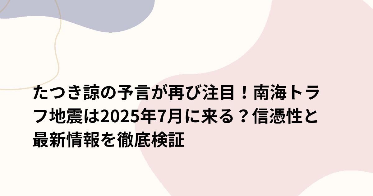 この記事では、たつき諒さんの予知内容の真相、信憑性、そして私たちが今できる備えについて詳しく解説します。