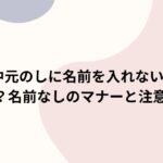 • 表書きの書き方:水引の上に「御中元」、下に贈り主の氏名を記載。