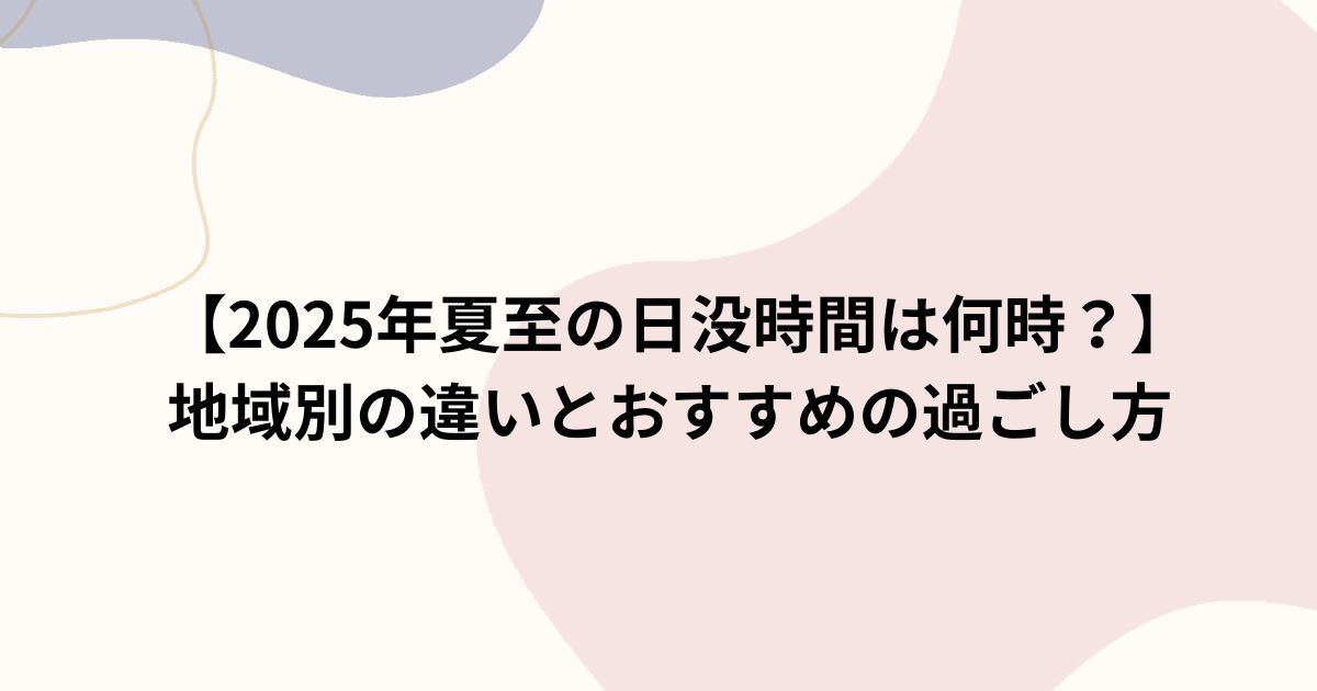 本記事では、2025年の夏至の日没時間を地域別に紹介するとともに、夏至の夕暮れを楽しむ過ごし方や知っておきたい豆知識も解説。自然のリズムを意識することで、日々の暮らしがもっと豊かになるはずです。