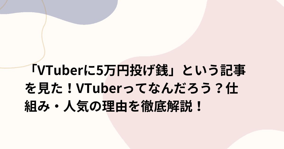 「VTuberに5万円も投げ銭!?そんなに人気なの?」──最近、VTuberへの投げ銭が話題になっています。