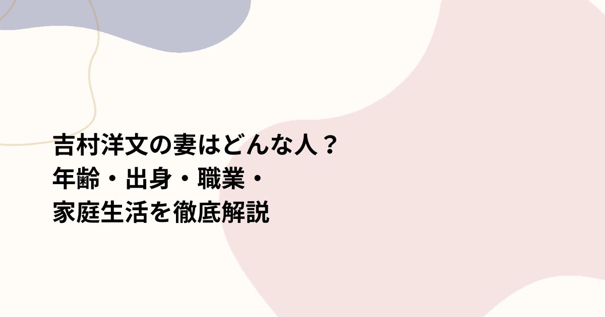 本記事では、吉村洋文氏の妻について、名前や年齢、出身地、職業、家庭生活まで詳しく解説します。