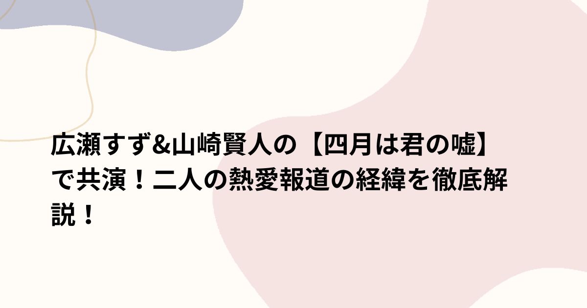 今回は、広瀬すず&山崎賢人の「四月は君の嘘」で共演していた。二人の熱愛はその時から始まっていた?という事を解説しました。