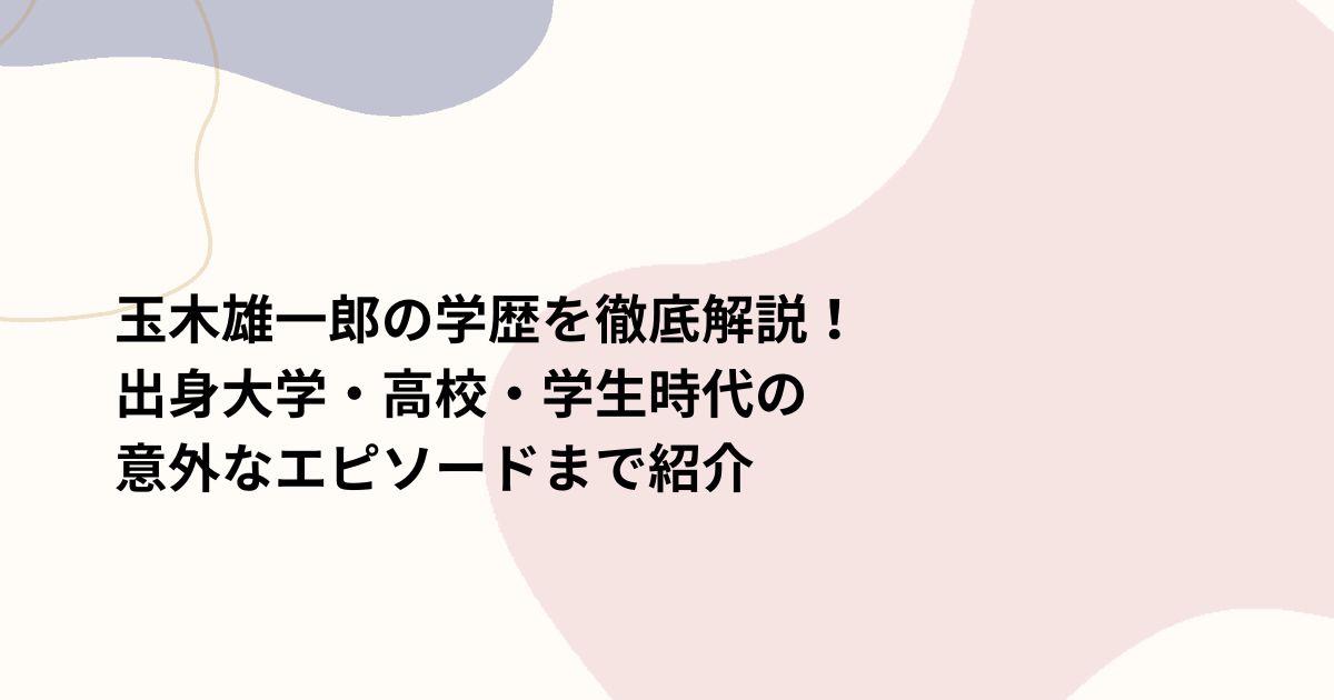 この記事では、玉木氏の出身校から学生時代のエピソード、そしてキャリア形成まで詳しく解説します。