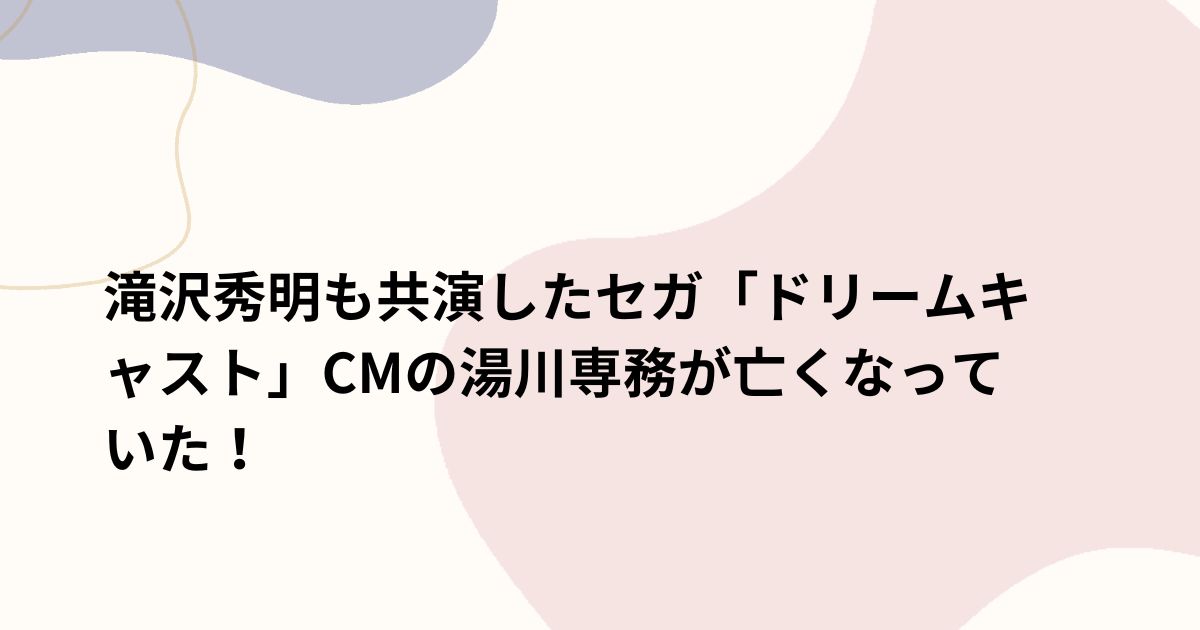 今回は、滝沢秀明も共演したセガ「ドリームキャスト」CMの湯川専務が亡くなっていた!という事を解説しました。